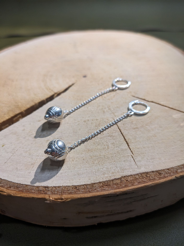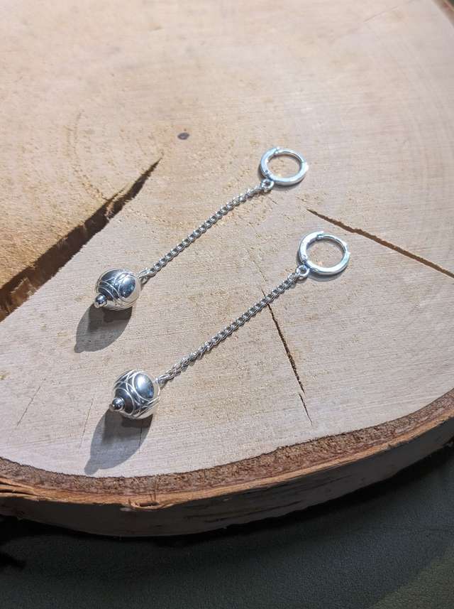 Cette paire de boucles d'oreilles arborent une jolie boule de pétanque