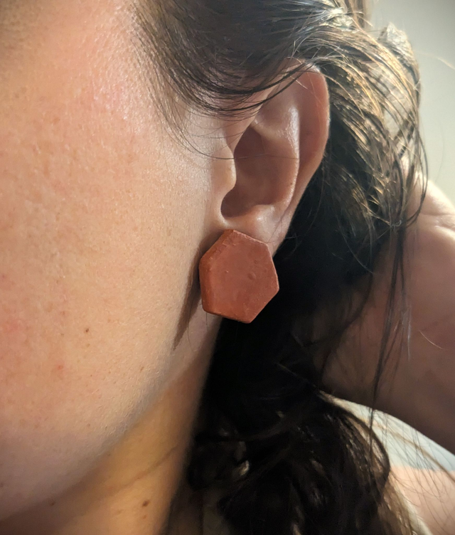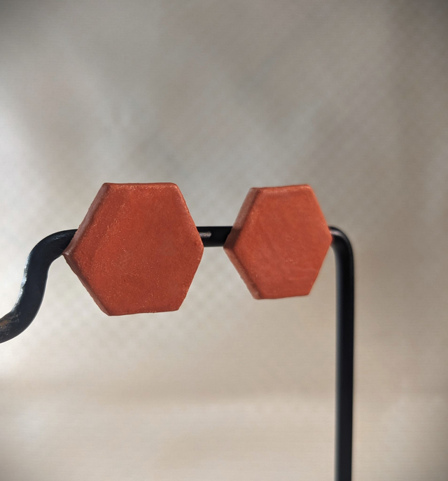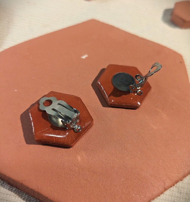 Faites d'argile, ces petites tomettes sont montées sur un clip argenté en acier inoxydable,