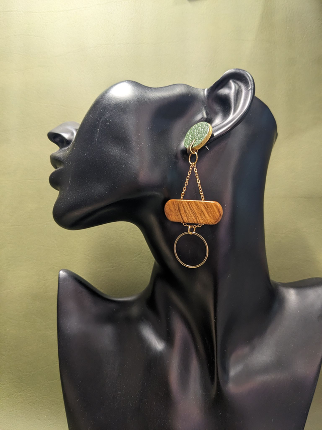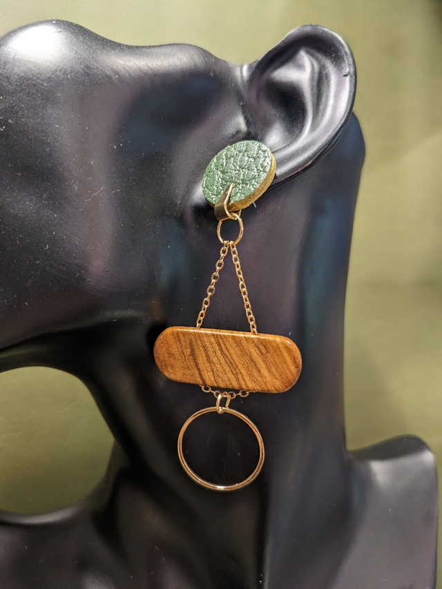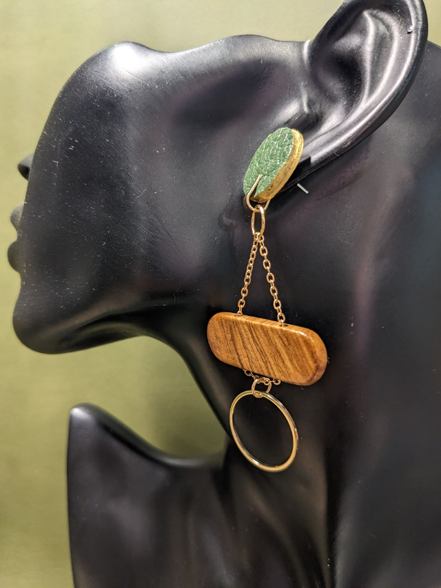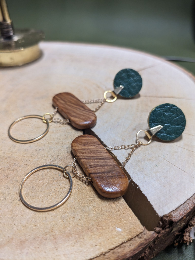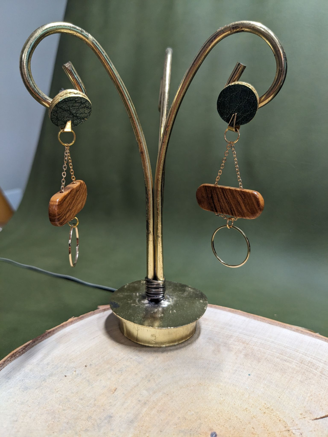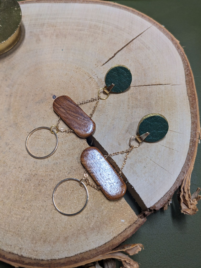 Cette paire a base de laiton doré, rassemble le bois d'olivier et le cuir italien.