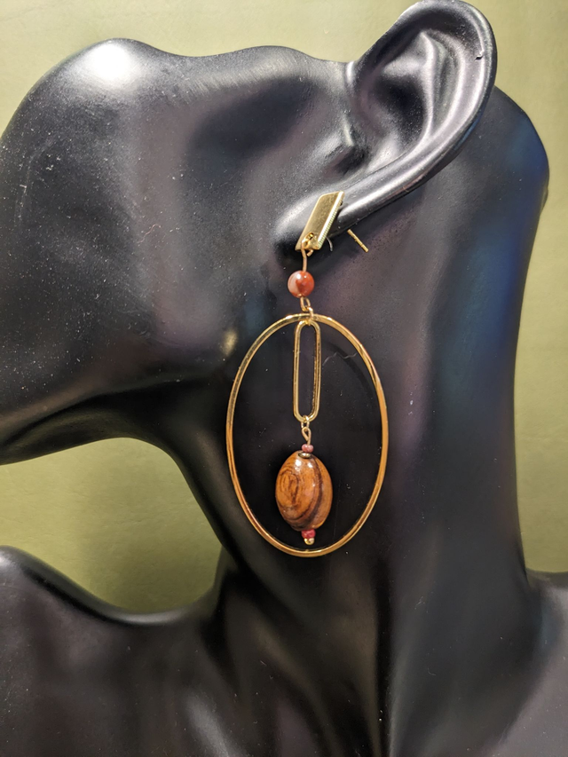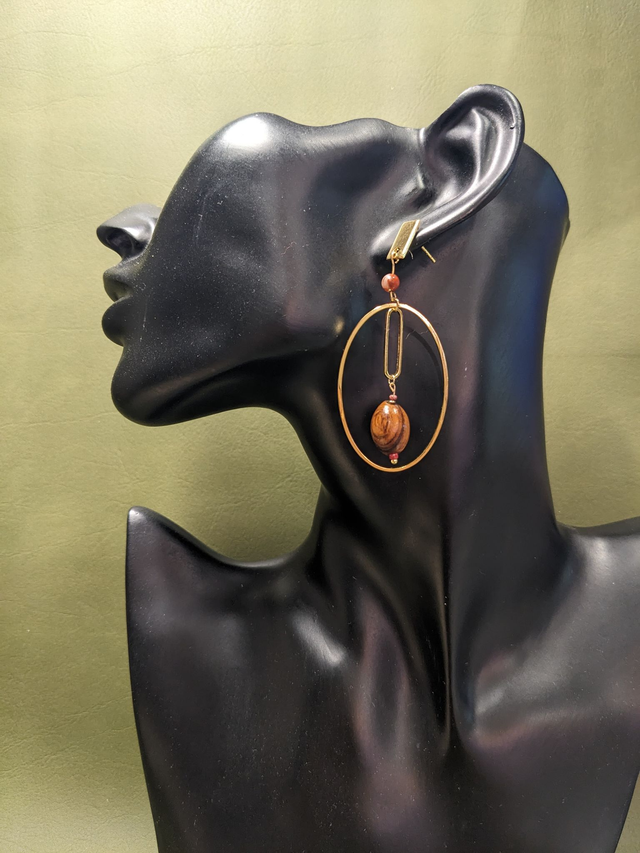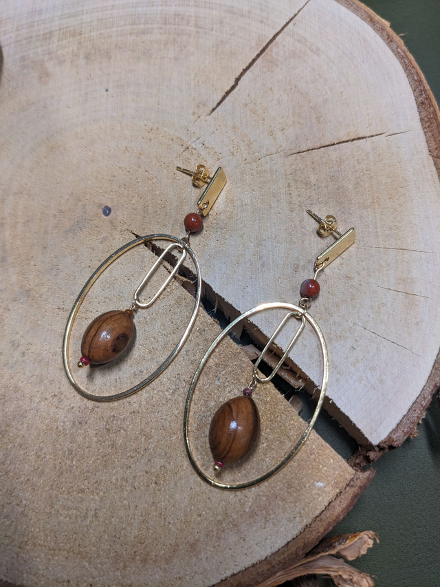 "Encencha" - Pendants Olivier, Jaspe Rouge, Or