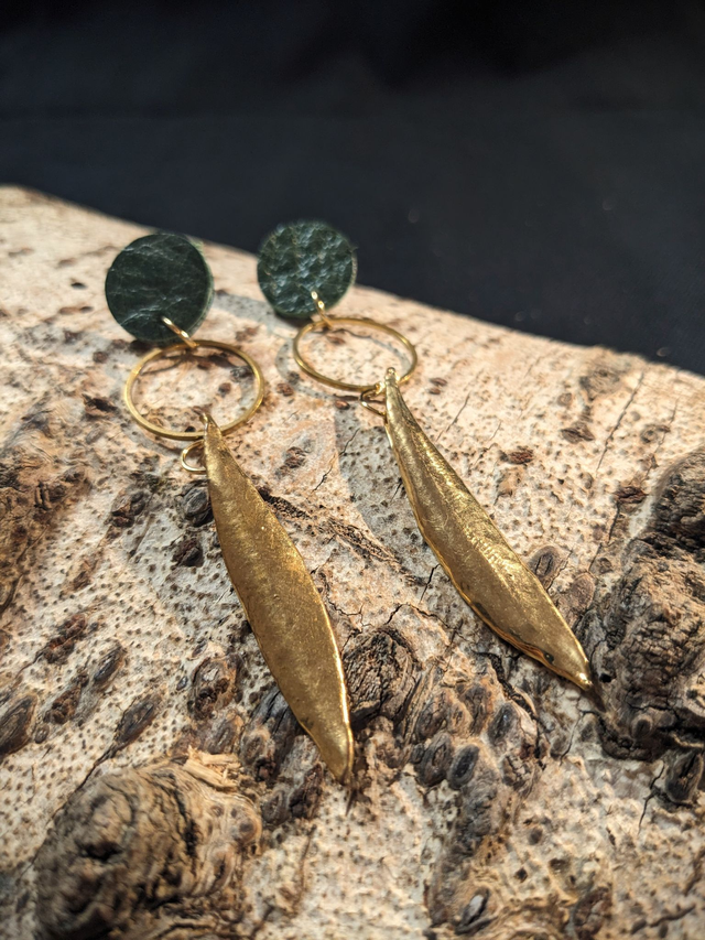 Chinées avec soin et fabriquées par un doreur talentueux de la région, ces boucles d'oreilles allient artisanat de qualité et inspiration naturelle.