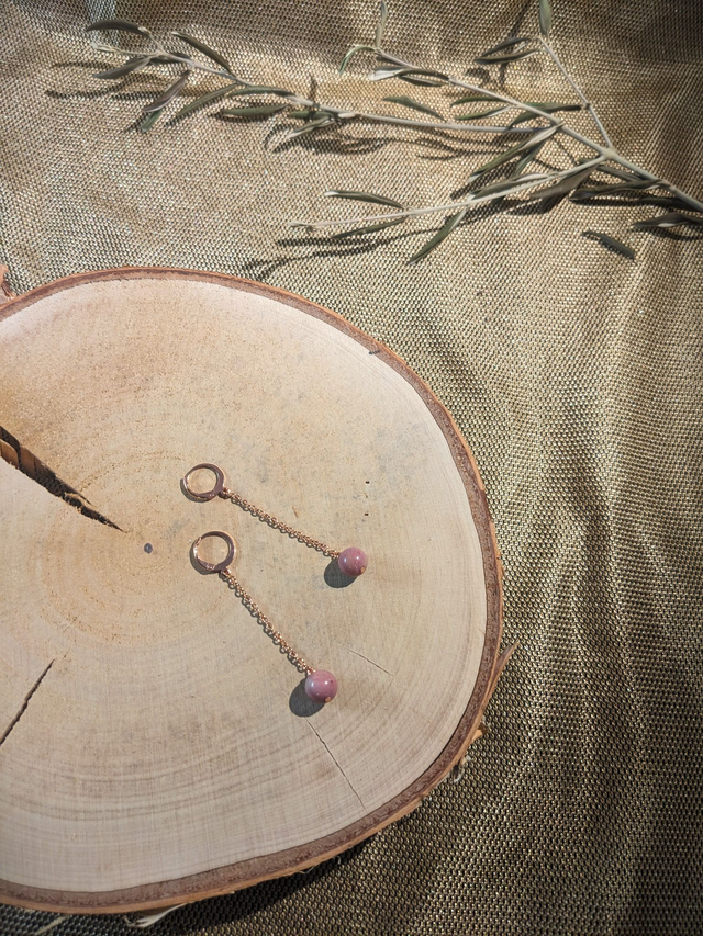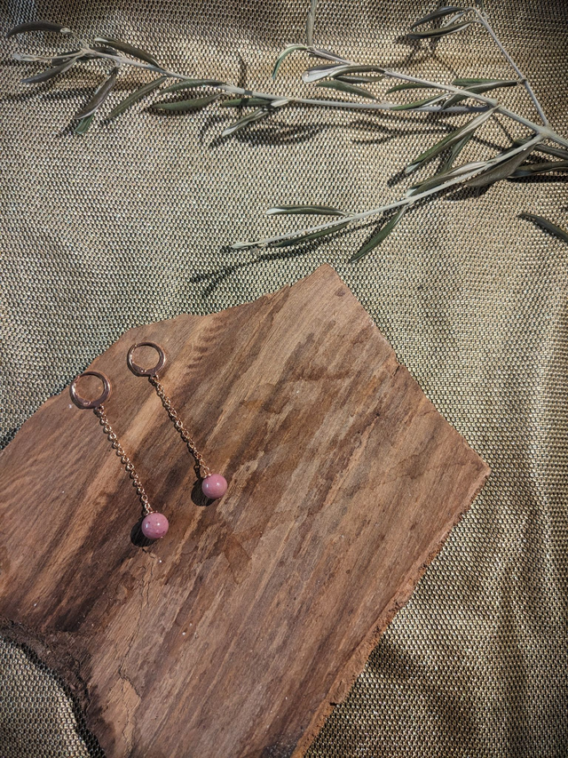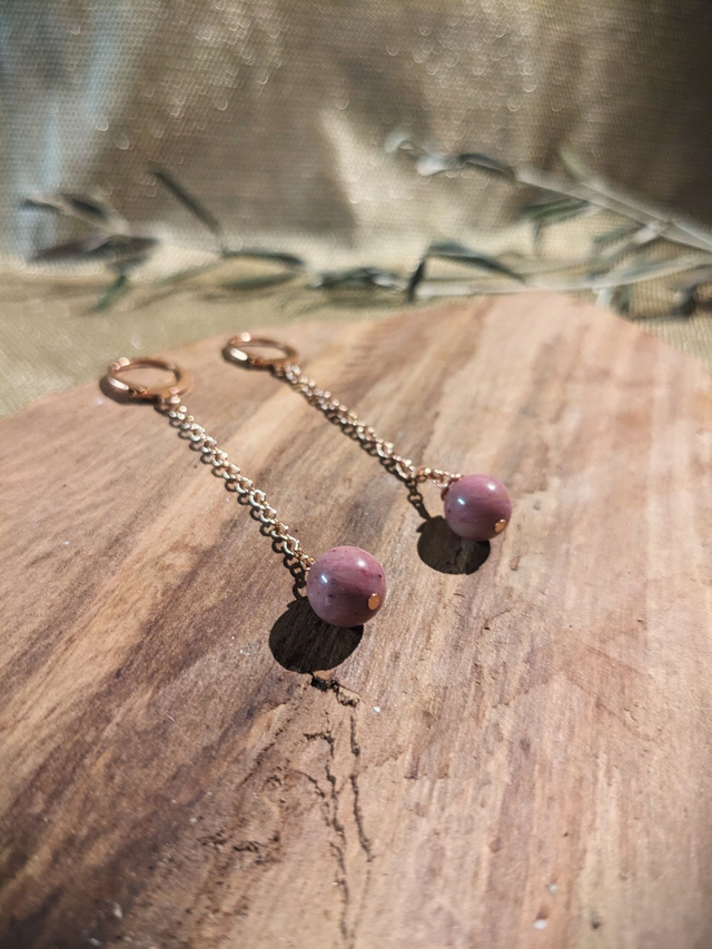 "Soufìo" - Pendants Dormeuses Rhodonite & Or Rose
