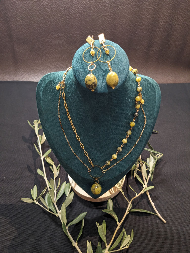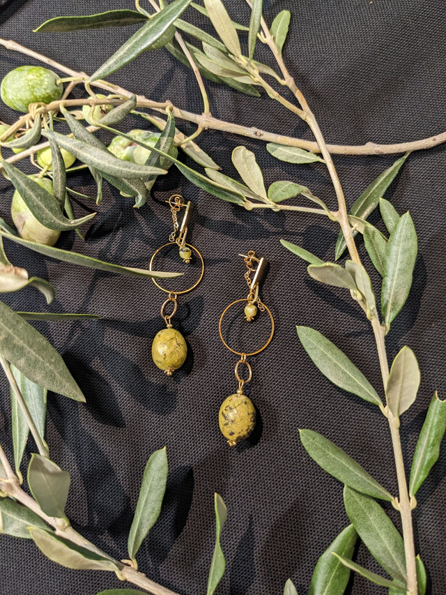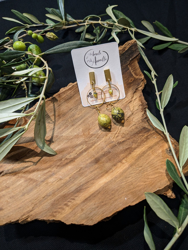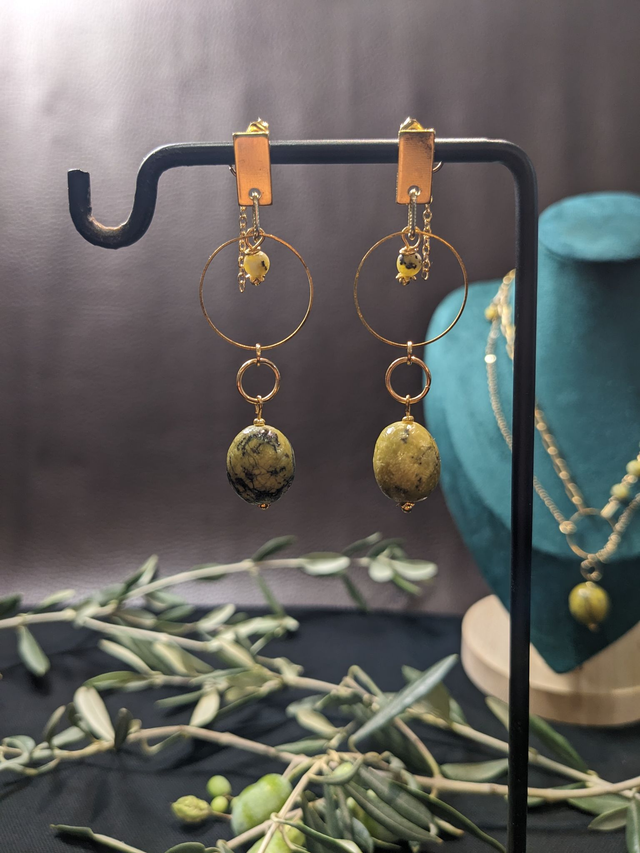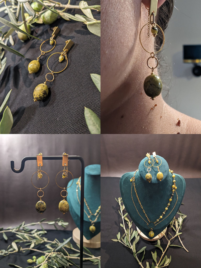 Les boucles ont été pensées en accord avec le collier : https://la-boucle-daureille.sumupstore.com/article/1-la-recolte-des-oliviers-parure-boucles-and-collier