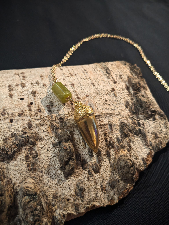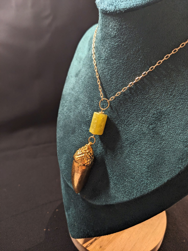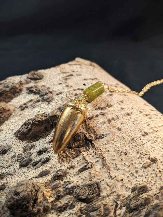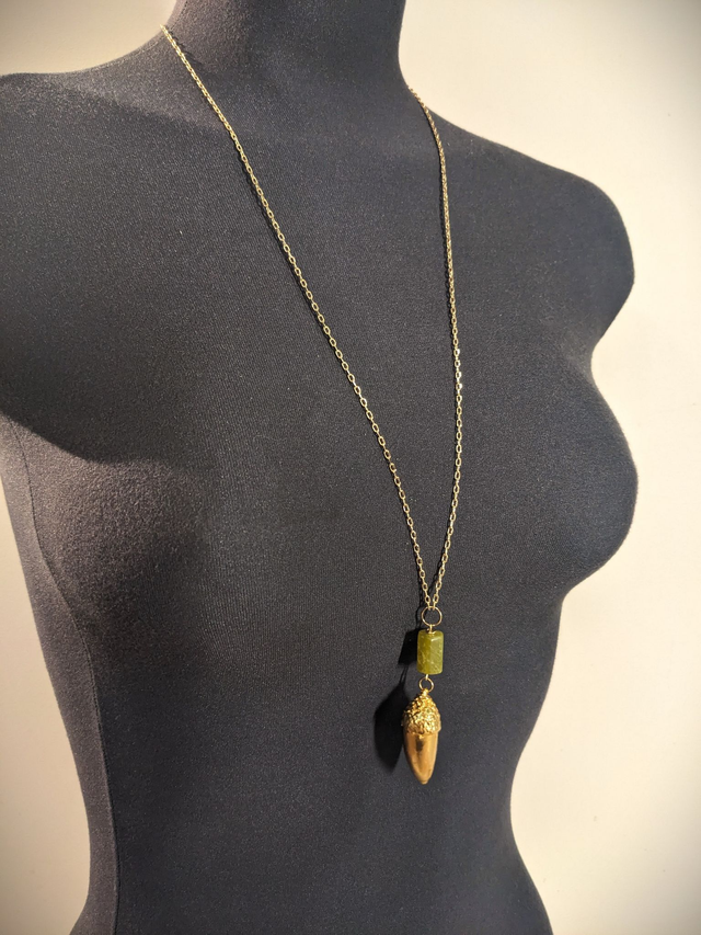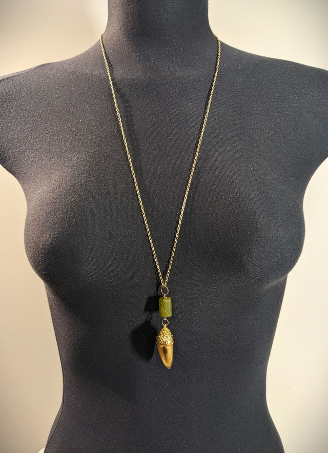 Aglan - Sautoir Gland Or 24k, Perle de Jade Nephrite