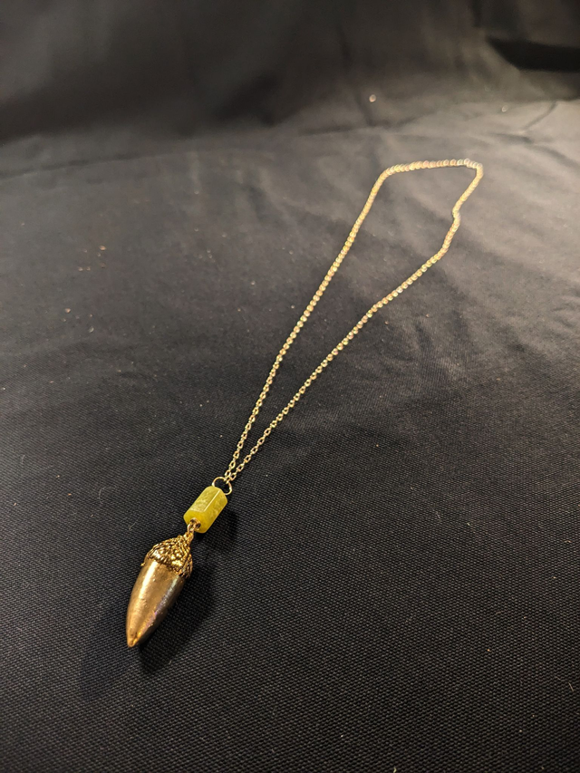 Apportez une touche d'élégance à votre collection avec ce sautoir raffiné, mettant en lumière un gland d'or finement travaillé associé à une somptueuse perle de jade néphrite. Cette pièce unique incarne l’harmonie parfaite entre la nature et le luxe, alliant un design classique à des éléments modernes qui captent tous les regards.