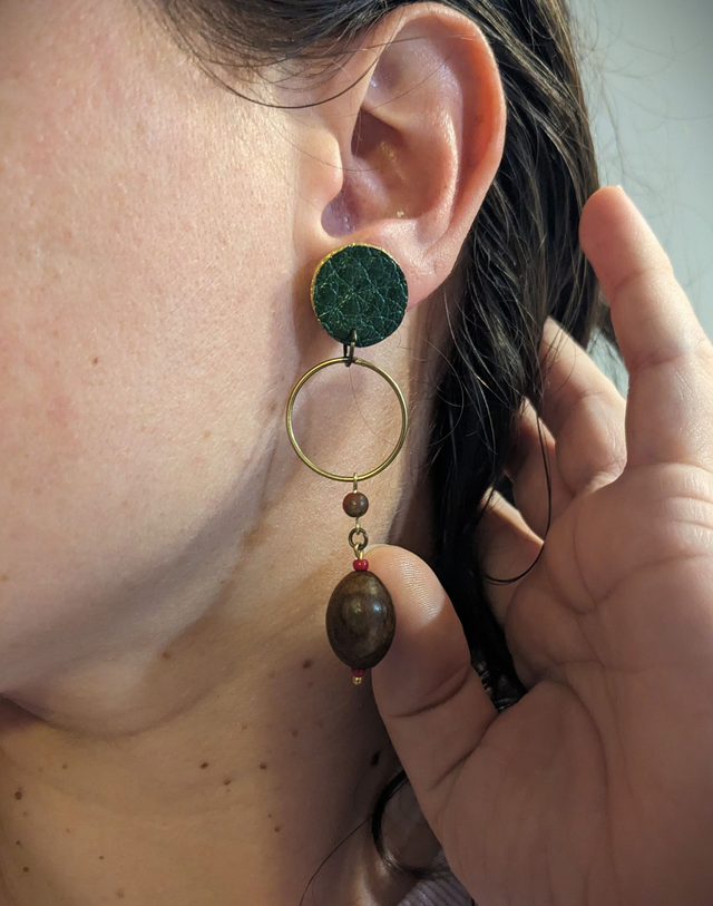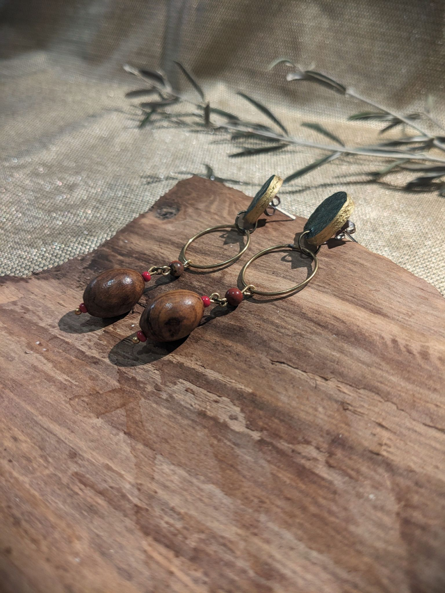 "Alis" - Pendants Olivier, Cuir, Jaspe Rouge et Bronze